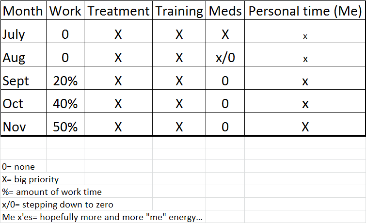 So I’ve made a decision! To prioritise treatment and training over work the next few months.
