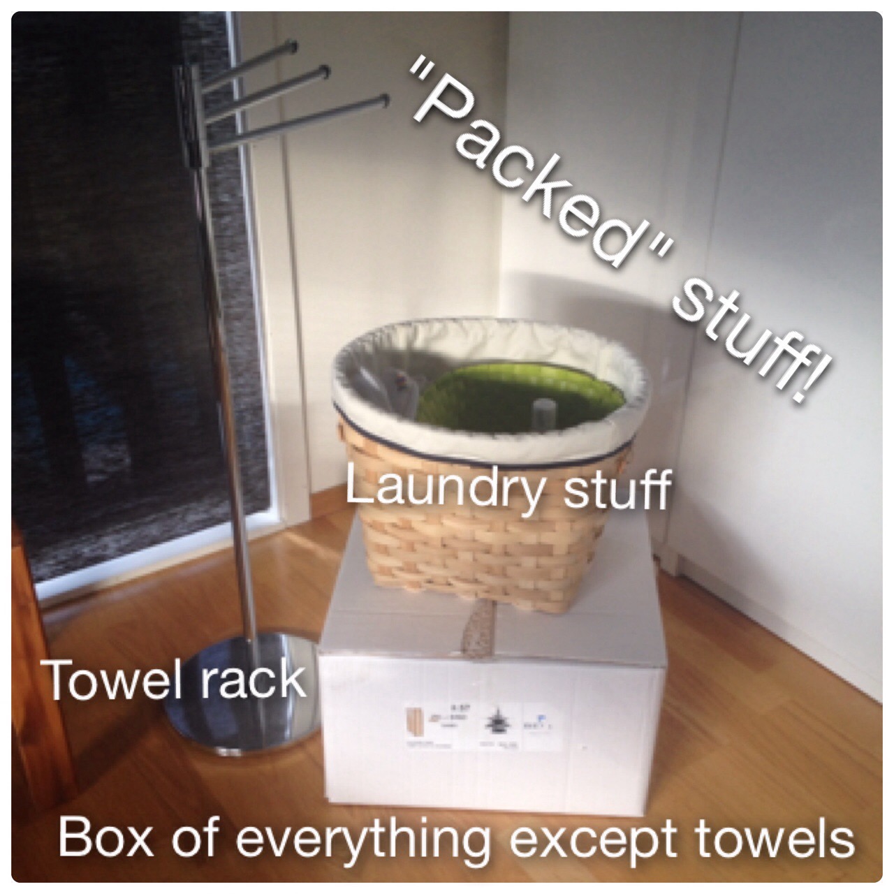 I boxed up most of everything, with the exception of items like hair dryer, laundry bin, trash bin, weight scale, toilet brush holder, floor mat as these are things I knew I would use during the week.