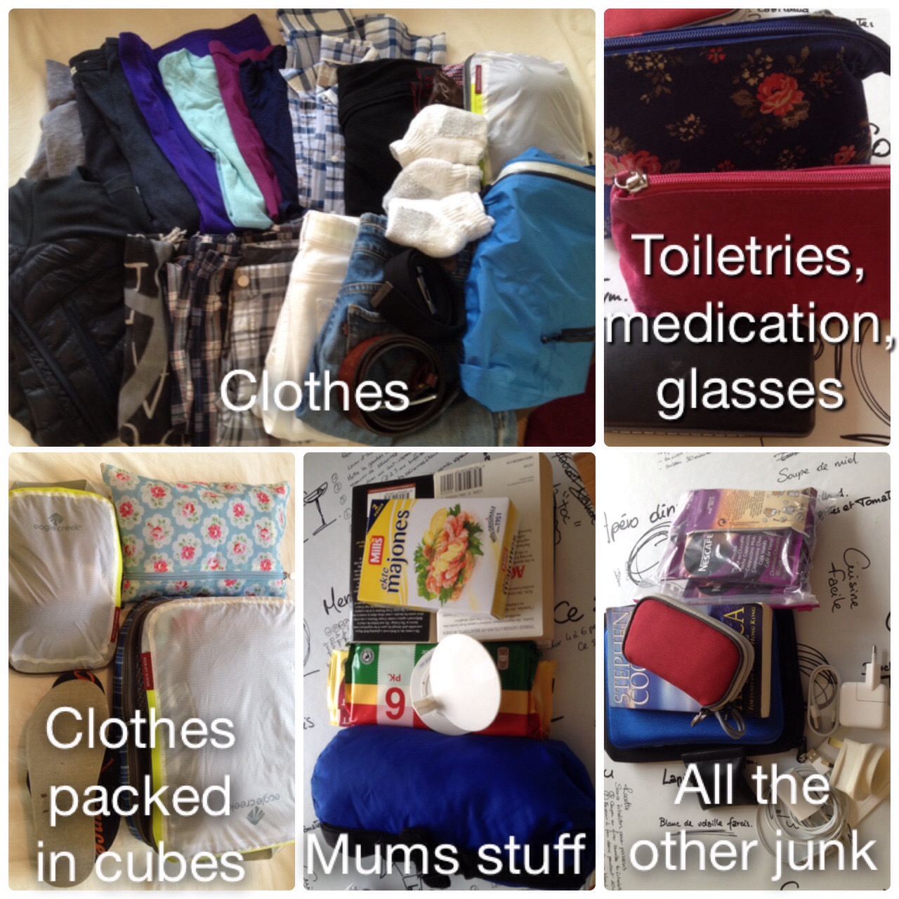 Beside all the goodies for my mum and my brother, this is pretty much my packing list for a week in England: