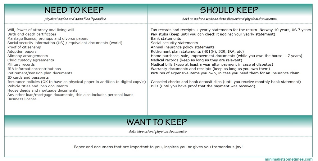 Yesterday we talked a bit about what kind of documents we need to keep, should keep and want to keep. I promised I would make you a printable picture of the KEEP overview.